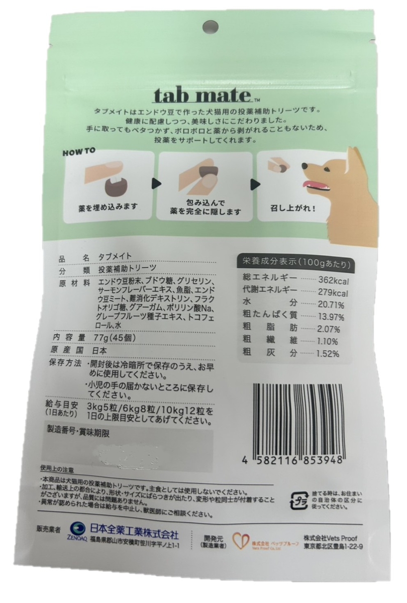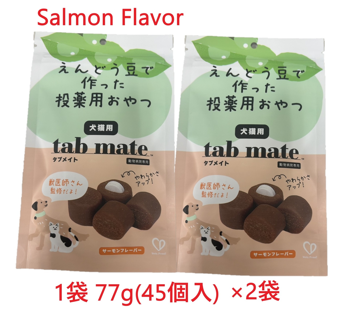 投薬補助 【2個セット】【サーモン】【タブメイト サーモン 77g(45個) ×2個】【賞味期限:2027.07.31】【犬猫用】【投薬補助トリーツ】【tab mate】【Salmon Flavor】 販売価格 3,180円(税込み) 会員価格 (税込み) 通常価格 (税込み) 在庫 商品コード tabmate-salmonflavor-00-02 JANコード 4582116853948 北海道もしくは沖縄へ配送される場合は、送料表示が0円となっていても、北海道:1,386円、沖縄:1,980円をご注文後に加算させていただきます 了承しました 数量 - + カートに入れる お気に入りリストへ追加する 入荷通知メールを希望する カテゴリー 投薬補助