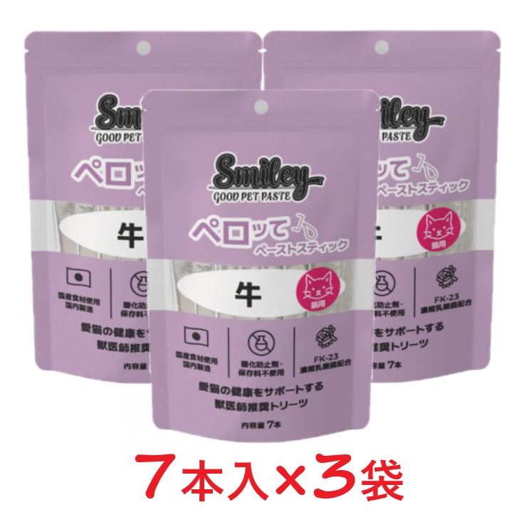 【猫用】【3個セット】【Smiley 猫用ペロッて 牛 7本入り ×3個】【計21本】【牛】【ペーストスティック】【栄養補給】【QIX】(スマイリー 猫用ペロッて)(C)