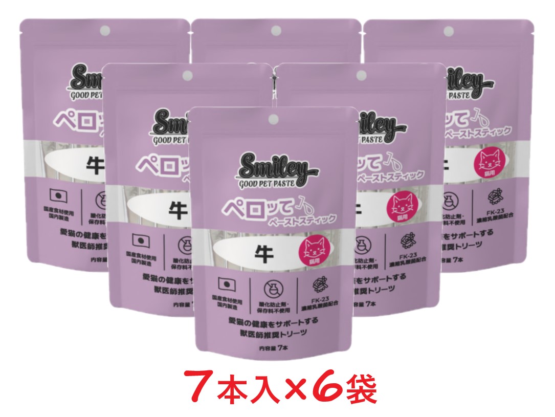 【猫用】【6個セット】【Smiley 猫用ペロッて 牛 7本入り ×6個】【計42本】【牛】【ペーストスティック】【栄養補給】【QIX】(スマイリー 猫用ペロッて)(発)