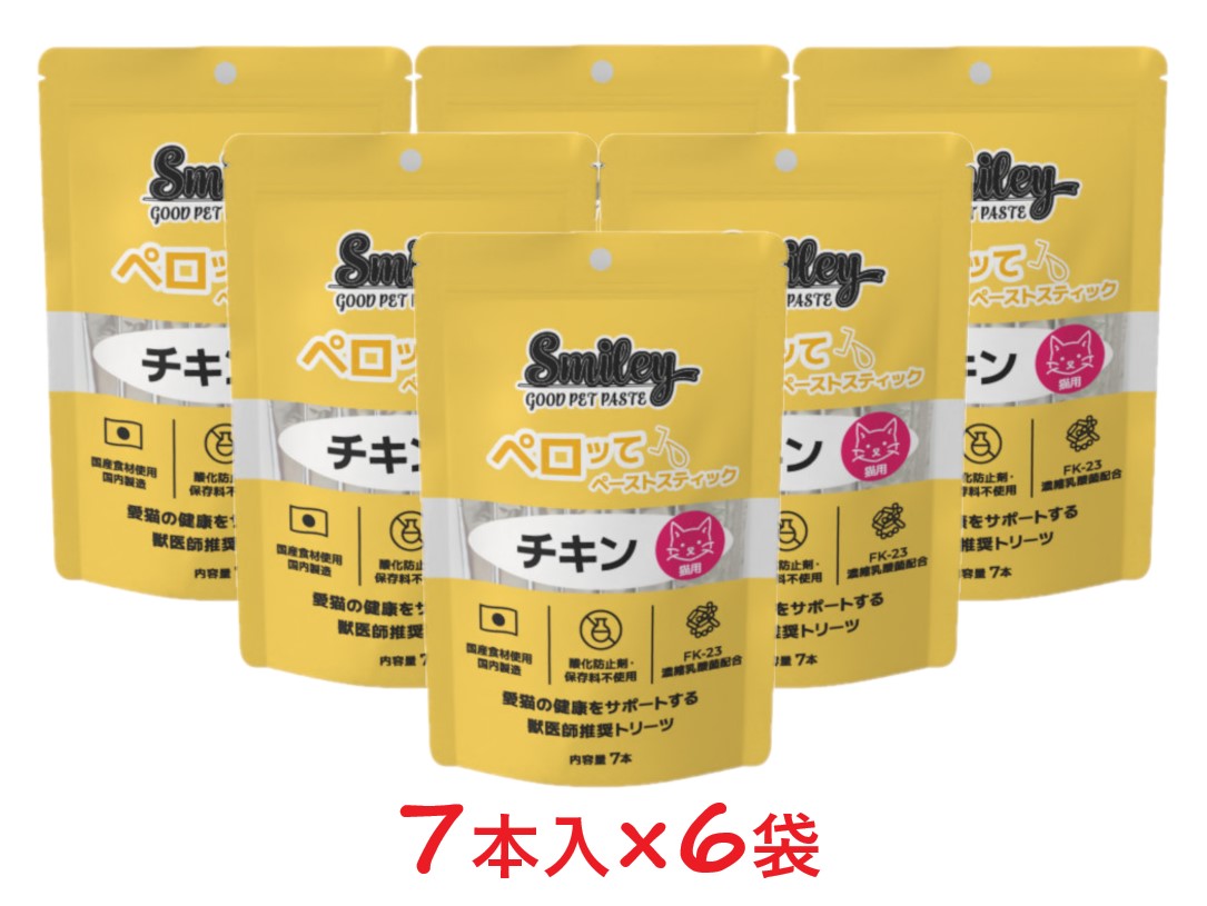 【猫用】【6個セット】【Smiley 猫用ペロッて チキン 7本入り ×6個】【計42本】【チキン】【ペーストスティック】【栄養補給】【QIX】(スマイリー 猫用ペロッて)(発)